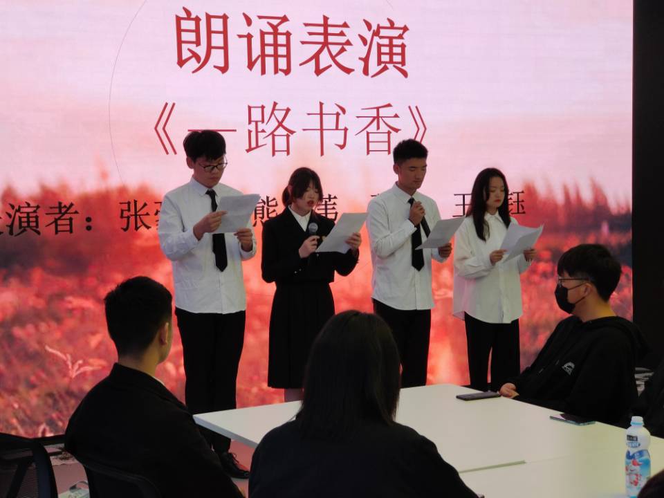 口语传播艺术协会张豪杰等4名成员用诗歌朗诵《一路书香》拉开活动序幕。在经典阅读分享环节,20级经济学院经济与金融专业蔡美霜在分享林语堂先生的作品《苏东坡传》时说:“我们需要通过阅读走进苏东坡先生的心境,认识他、了解他,这正是读书带给我们的意义所在。”