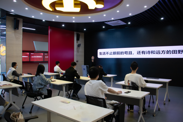 活动的最后,向俊对三位同学的分享进行了总结、评价并作补充。向俊为大家分享了阅读经典的基本方法以及自己对经典的独道见解,从《曾国藩教子十法》说开去,提取出“看、读、疑、写、作”五个阅读要素并一一进行详细解读,赢得掌声不断。向俊表示,经典是不会被时间淘汰的,它是民族性格与诗意表达的塑造者,并倡议用生命激活经典,用经典诠释生命。