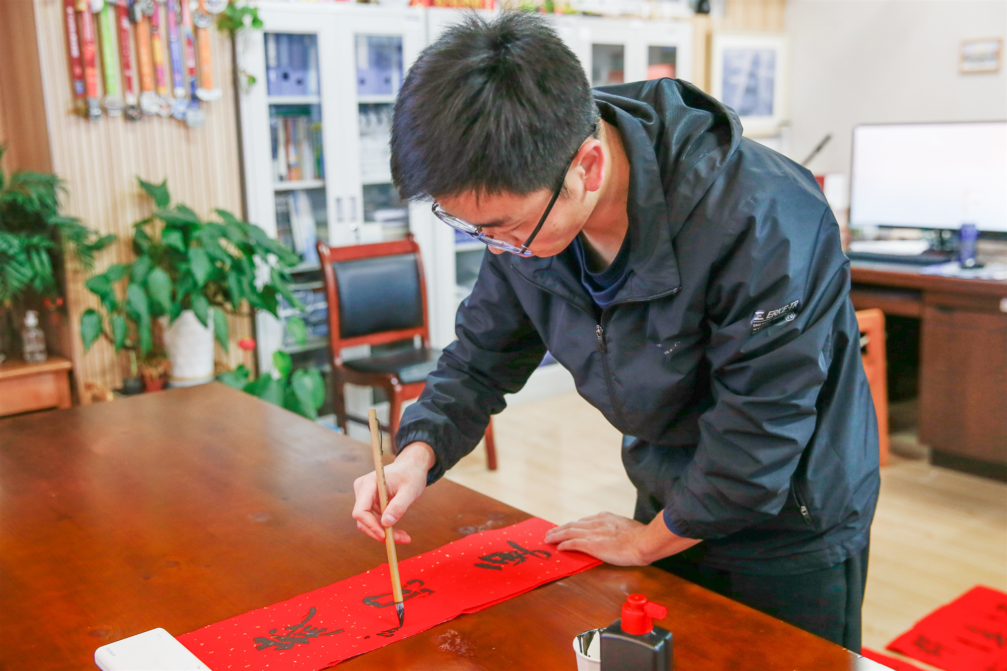 每年伏案两小时自学书法