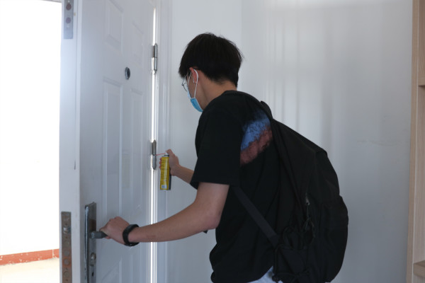 “大家喷润滑油的时候要注意,先摇一摇,摁到喷口,集中在一个点喷,从点到面。”5月3日下午,一批青年志愿者在南一教学楼门口集合,共计15余人,他们分成3个人一组,每组人员手里拿着一瓶润滑油喷雾和抹布,整装待发,即将开展一场有意义的实践活动。