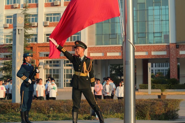 致远广场上,我校国旗护卫队身着礼服,喊着响亮的口号,以铿锵有力、掷地有声的步伐护送国旗至升旗台,同学们庄严合唱国歌,目光注视五星红旗,感受新中国冉冉升起的磅礴伟力。国旗升顶,国歌奏停,所有学生行完注目礼,以目光远送国旗护卫队护旗离去。