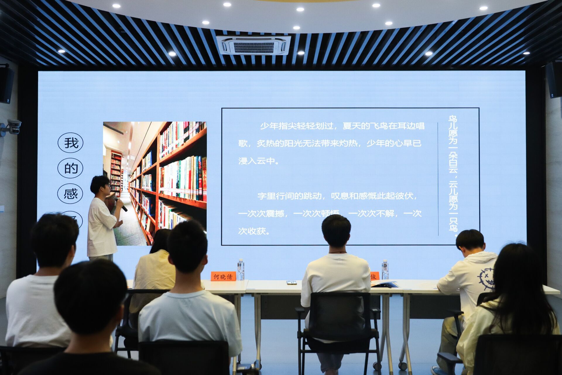 “飞鸟带给我们的,是一场心灵的洗礼,是一种爱与美交织的智慧,是一个真实而清新亮丽的梦。”体育学院的付恒在分享《飞鸟集》的时候表示,读泰戈尔的诗歌让我们感受到一种在俗世中脱胎换骨的超然,感受在喧闹的城市中寻找到一角的宁静。“我虽然是体育生,但能在运动之余读一读诗歌、写一些诗歌,不仅是一种享受也是让躁动的自己平静下来最好的方式。”
