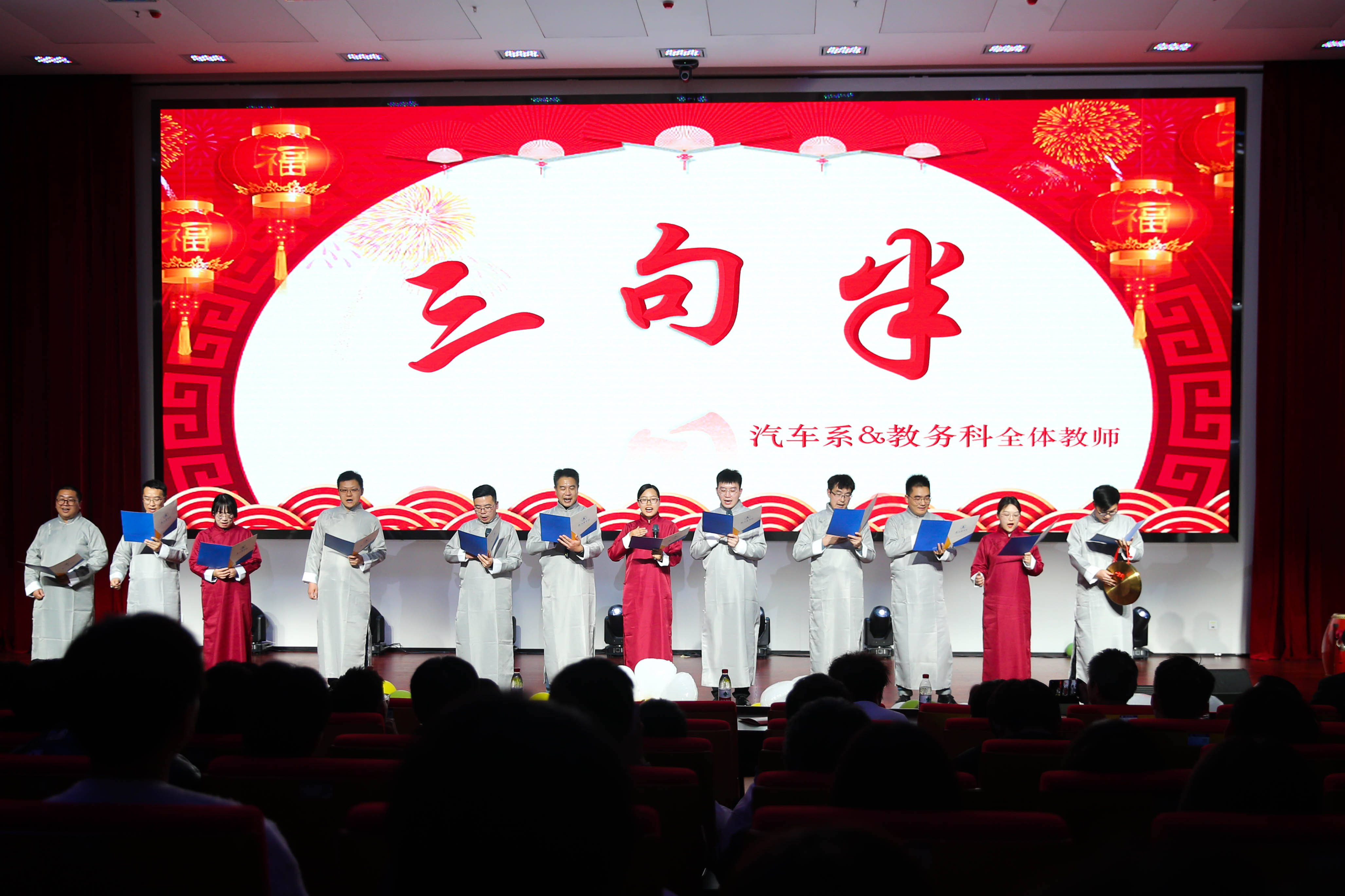 舞蹈《热烈》在现场灯光的闪烁下,舞者大方自信登台对战街舞,高难度动作频出,现场观众连连叫好,《强军战歌》铿锵有力,振奋人心。由汽车工程系教师带来的三句半《以小我之劳,铸大国之梦》让人眼前一亮,敲锣打鼓用三句半讲述心声寄语,体现了教师们爱岗敬业、无私奉献的精神。拉丁舞《永恒舞梦》优美高雅,小品《你的问题》风趣幽默、深入人心。