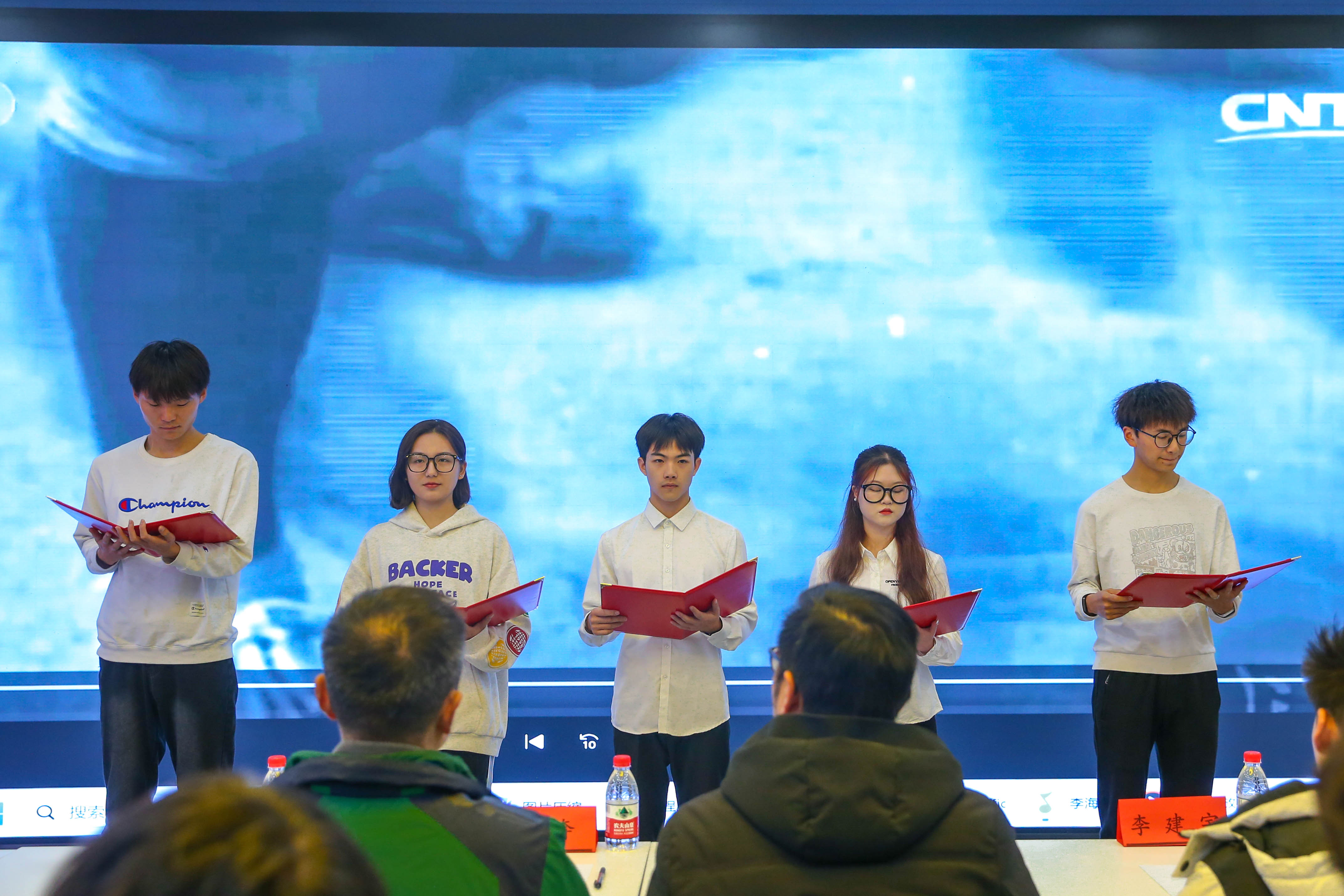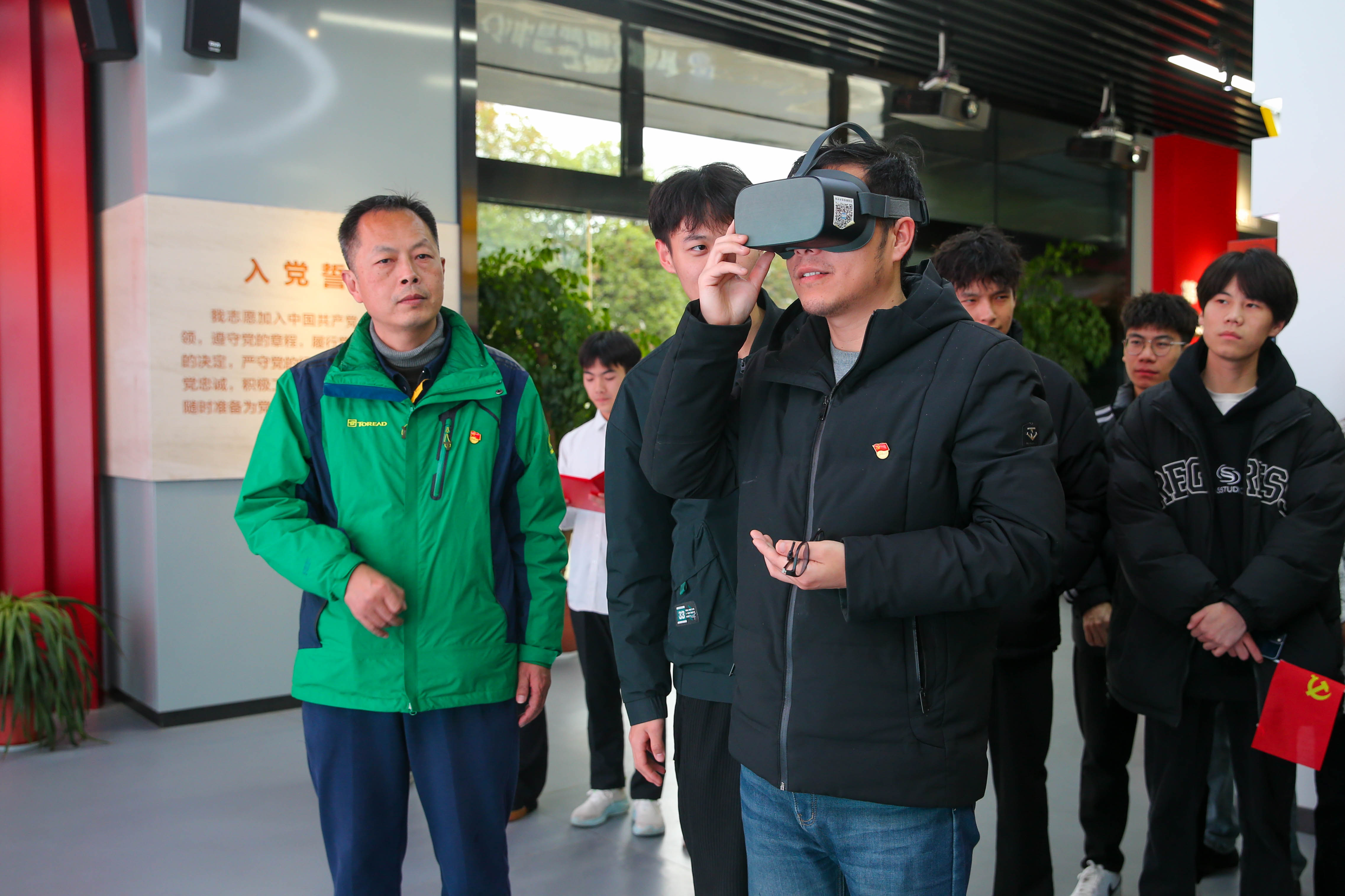 参观结束后,一行人落座智慧党建学习区。由口语传播艺术协会的学生代表带来诗朗诵《不忘初心》,“如果,记忆的天空下有一双眼睛,穿过蜿蜒的岁月,是否还能看清,八十多年前从瑞金出发的夜晚……”抑扬顿挫间中国共产党长征路的艰苦岁月仿佛重现在大家眼前。