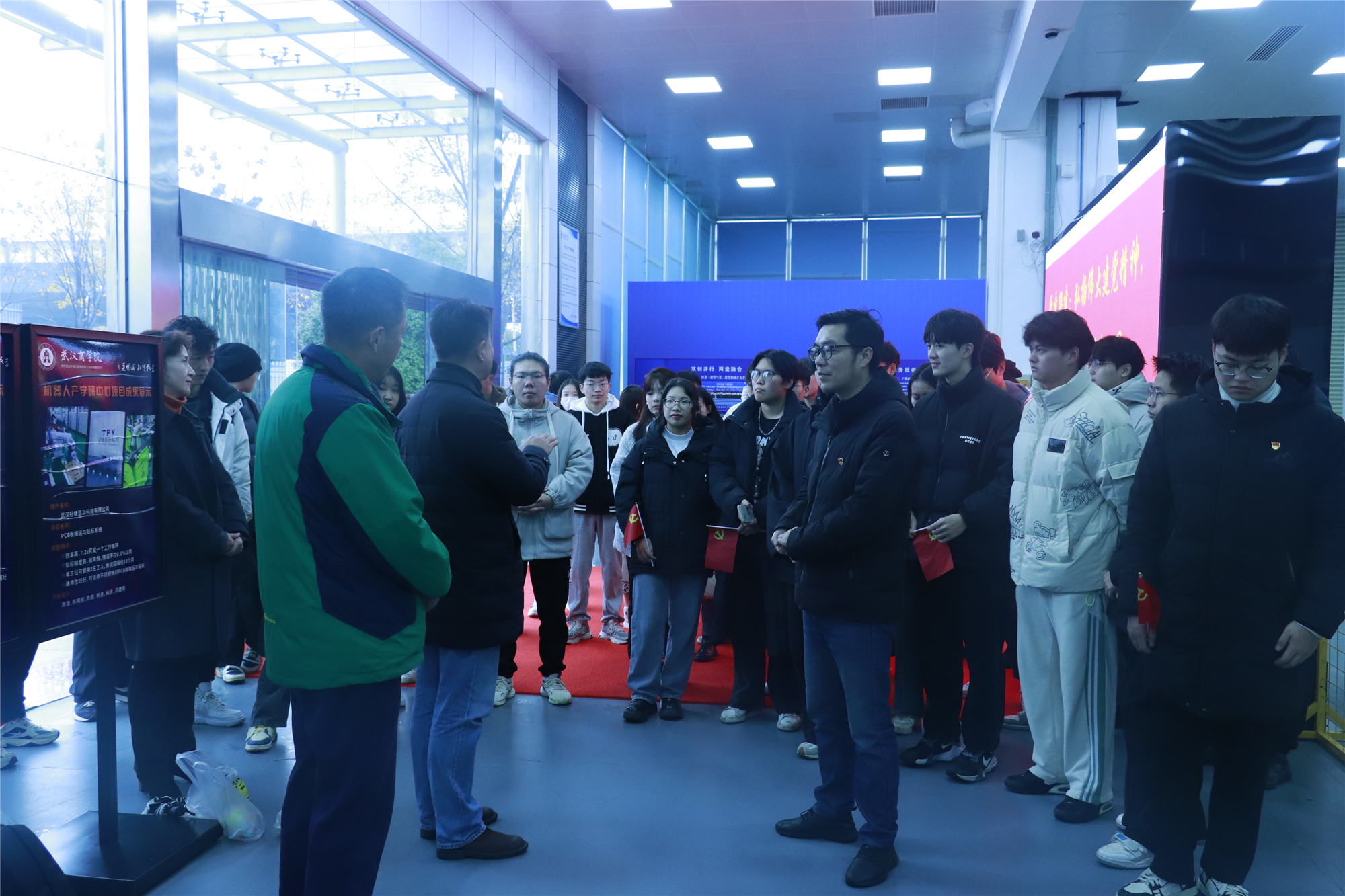 来到产学研中心,在门口大屏幕观看产学研中心的发展后,付艳彪跟随讲解同学的步伐,了解国产➕18➕爽➕不卡创办以来的成就。在国产➕18➕爽➕不卡产学研中心的门口,国产➕18➕爽➕不卡学子为光谷职业技术学院光电信息学院详细介绍了2021年中国工程机器人大赛上获得国家级一等奖的堆垛机器人和颜色分拣机器人。