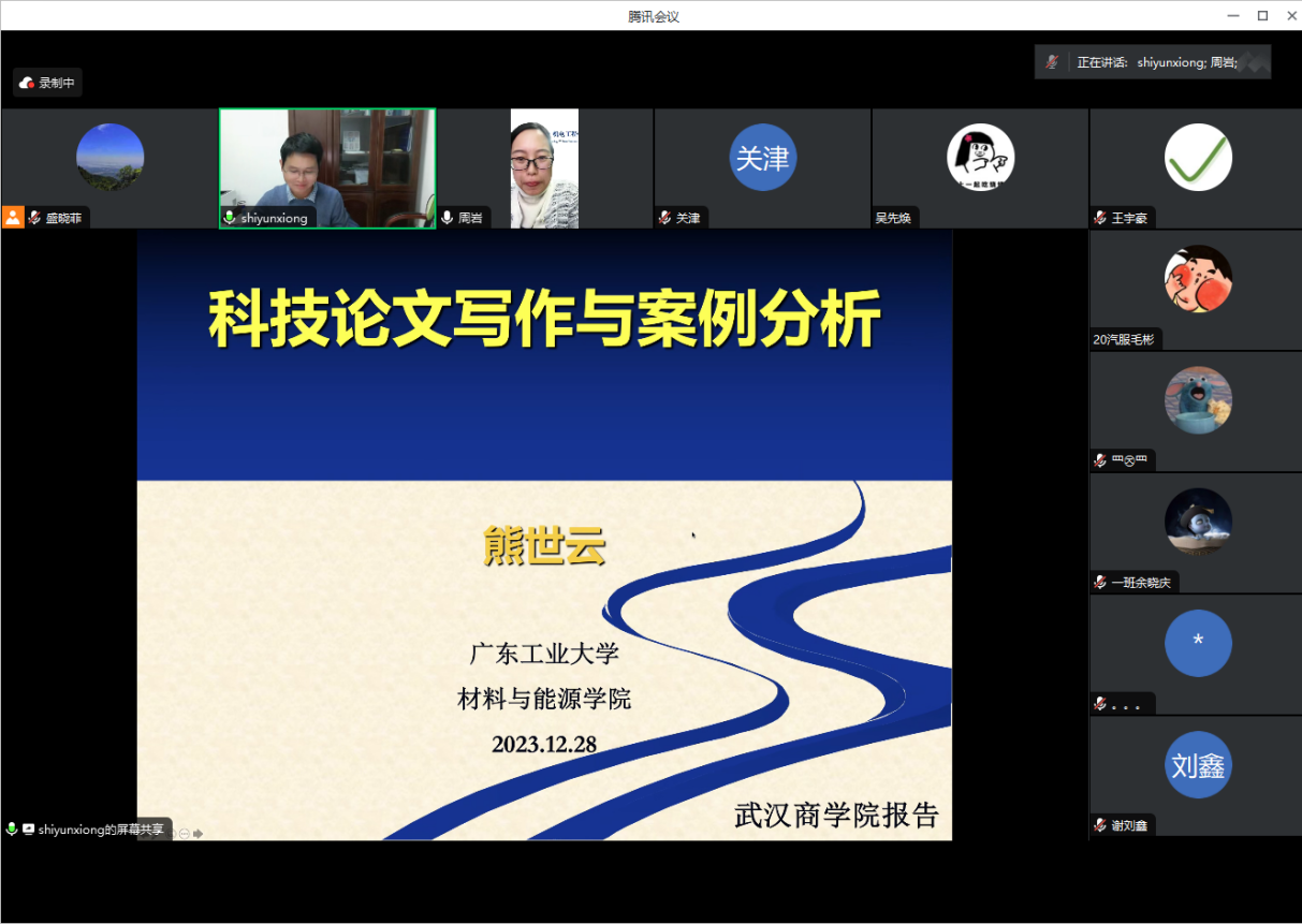2023年12月28日晚上国产➕18➕爽➕不卡举办了《科技论文写作及案例分析》的学术讲座。此次活动特别邀请到广东工业大学教授,博士生士生导师,德国洪堡学者,熊世云教授作为主讲人。国产➕18➕爽➕不卡专任教师参加了此次讲座,讲座采用腾讯