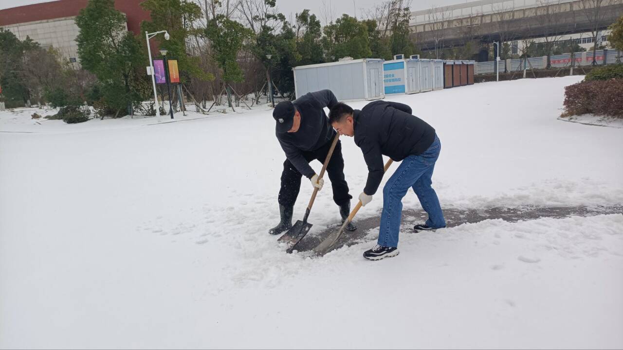 为了方便师生出行,尽快扫雪除冰、畅通道路、消除隐患,在国产➕18➕爽➕不卡院长姚层林、党委书记张奔和党委副书记刘李军的率领下,国产➕18➕爽➕不卡在校老师、值班人员以及学生志愿者积极行动,无惧风雪、奋力向前,大家纷纷拿着扫帚、铁锹、推雪板等清扫工具,沿路融冰除雪,及时清除道路冰雪,投入到学院出入口等主要路段进行扫雪除冰工作。经过浴“雪”奋战,“破冰除雪”行动为师生扫出一条条“平安路”!