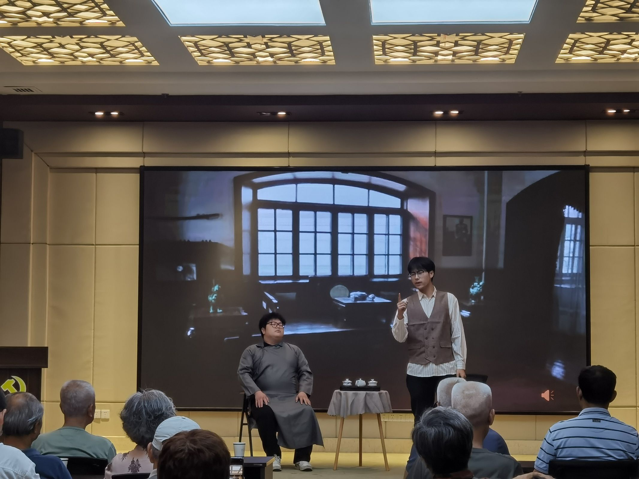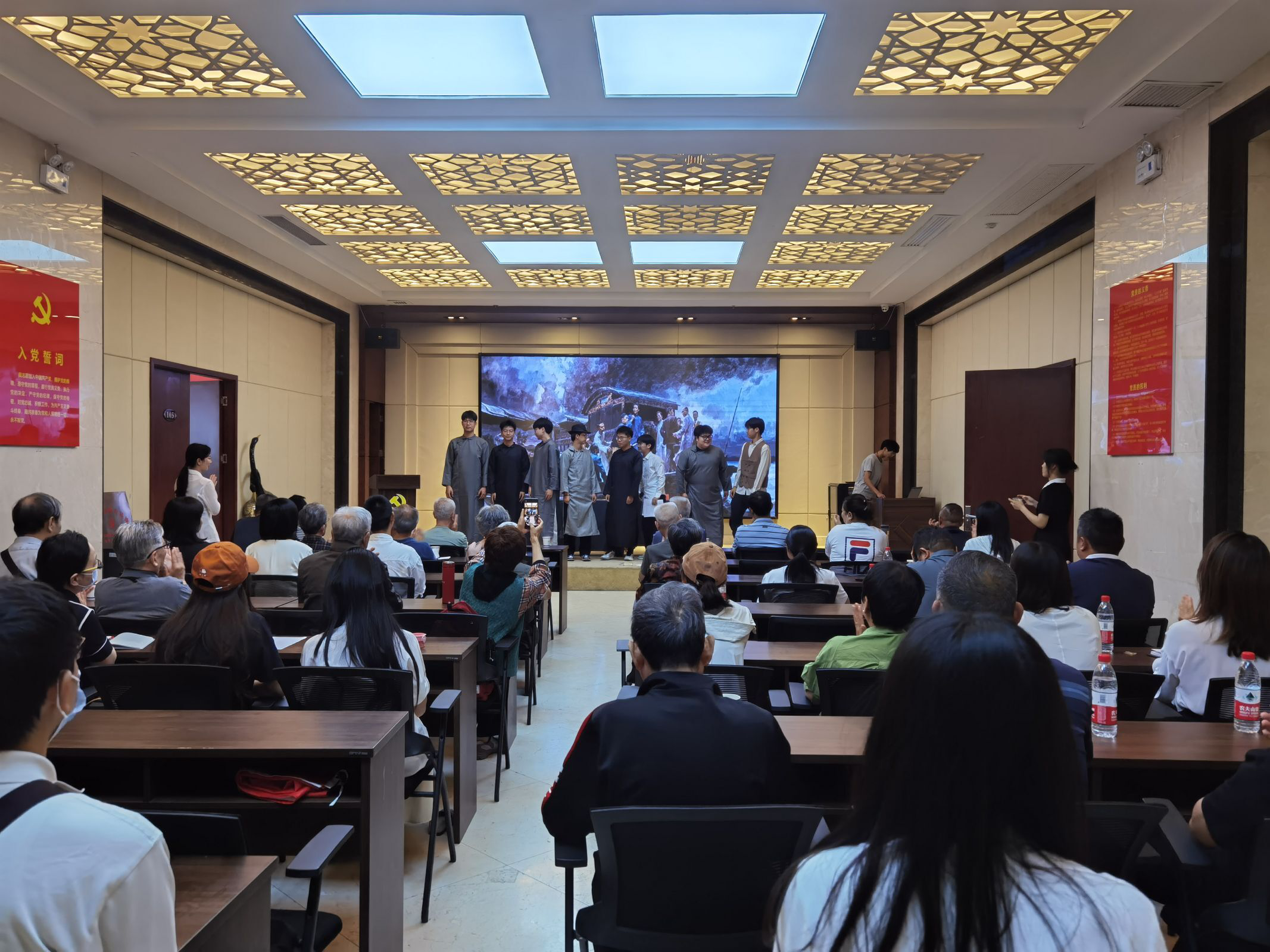 第三项,由我校国产➕18➕爽➕不卡带来的红色情景剧。片段选择的是1921年中共一大会议召开的历史事件,机电工程学生党员们生动再现了中共一大代表从上海法租界望志路106号转移到嘉兴南湖红船上开会的情景。情景剧中的共产党人,面对苦难,坚贞不屈,奋起抗争,以百折不挠的精神,谱写了一曲曲可歌可泣的宏大史诗,体现出一腔热血的共产党人的“忠魂”。当看见中共一大的会议因为法租界巡捕房的捣乱而被迫中断,有几位老同志攒起了拳头。情景剧表演结束后,一位老同志紧紧握着我院学生的手,真切地说:“我是经历了战乱的,那时候还小,也不知道什么,但是我们是确确实实饿过肚子的,也是确确实实过过苦日子的。孩子,你们的幸福来之不易,要好好长大,保家卫国。”