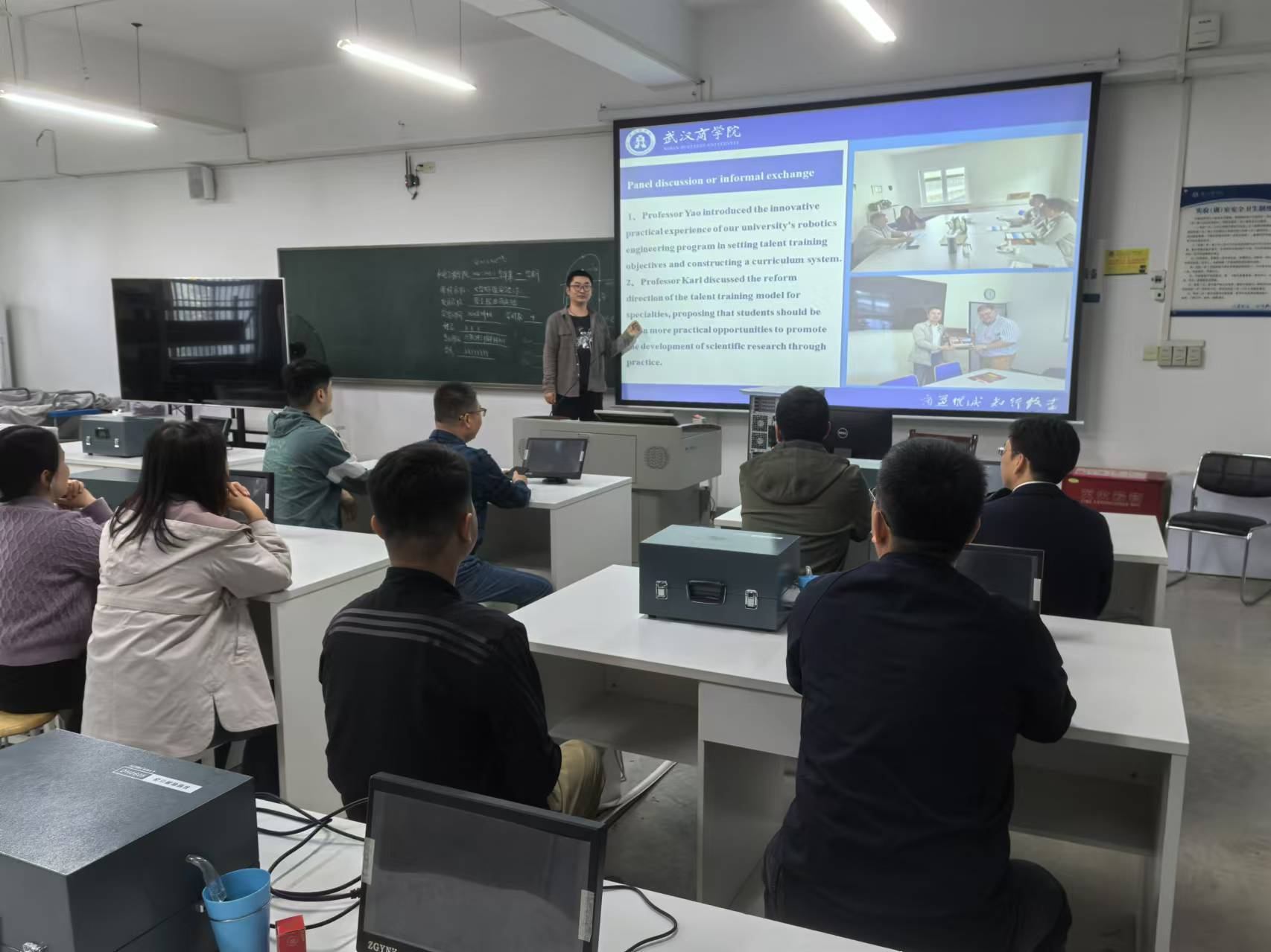 近日,国产➕18➕爽➕不卡机器人教研室组织出访教师学习经验交流活动,本次活动由潘登老师对出访德国参加武汉-德国投资贸易洽谈会及拜访德国迈凯国际消防培训学院的基本情况进行现场交流汇报。