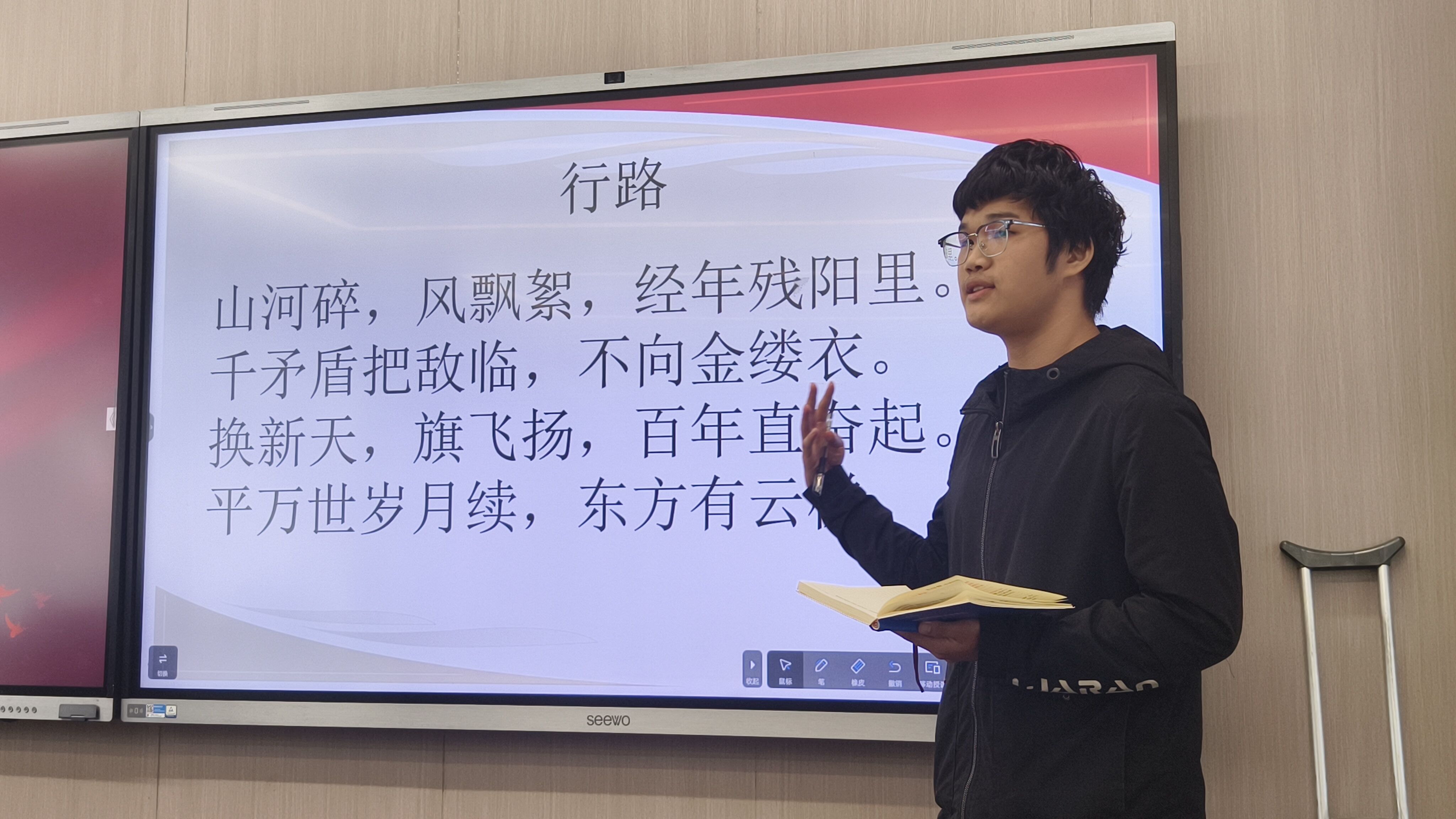 11月28日,口语传播艺术协会十一月特别主题团日活动暨第十九期“青春致远”读书分享会“经典领读”系列之“光阴荏苒辞旧岁,踔厉奋发奔未来”活动在南一207教室圆满举行。本次活动由口语传播艺术协会主办,通过阅读与交流,提升青年的文化素养和时代使命,吸引了全校40位同学参与本次读书分享会。