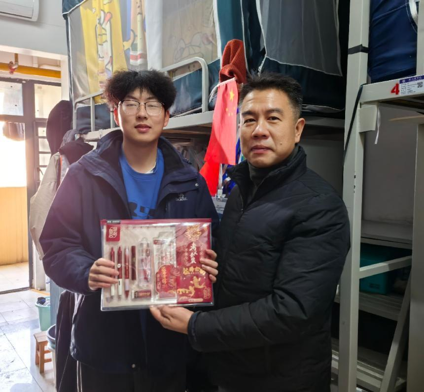 为鼓舞考研学子士气,缓解备考压力,2024年12月11日,国产➕18➕爽➕不卡姚层林院长、刘李军副书记带队,学生工作办公室全体辅导员陪同,对学院考研同学集中的寝室逐一进行了走访慰问,并赠送了写有“考试过关、龍腾金榜”的考研文具“加油包”。