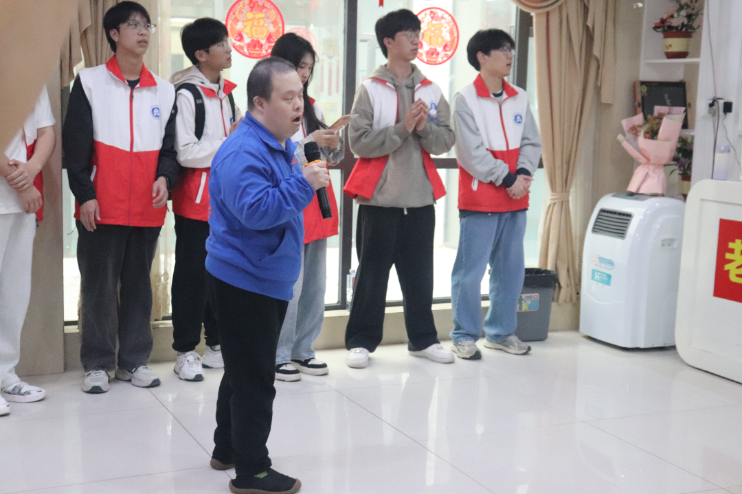 活动开场,志愿者们各施所长。叶宇翔同学凭借专业知识,为老人们详细讲解春季健康知识,从日常饮食中的营养搭配,到作息时间的合理调整,细致入微,助力老人科学养生。龚畅、黄波等10名同学带来《歌唱祖国》、《没有共产党就没有新中国》等经典红歌联唱,熟悉的旋律在房间里回荡,老人们听得入神,不少人轻声跟唱,现场气氛热烈。